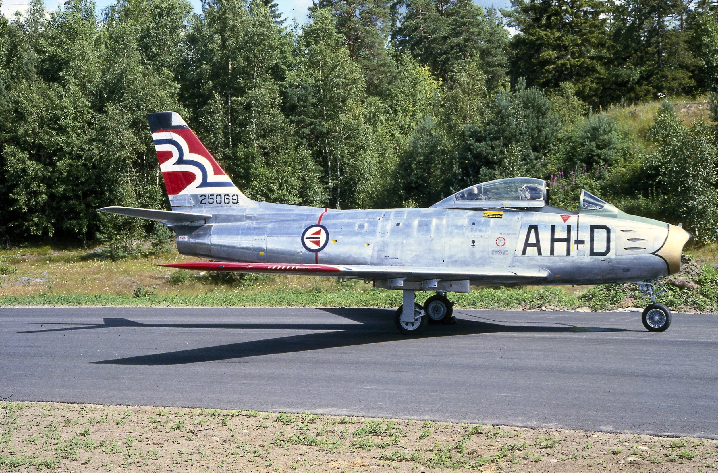 F-86F 52-5069 AH-D i de første Flying Joker fargene. Foto Rygge hovedflystasjon